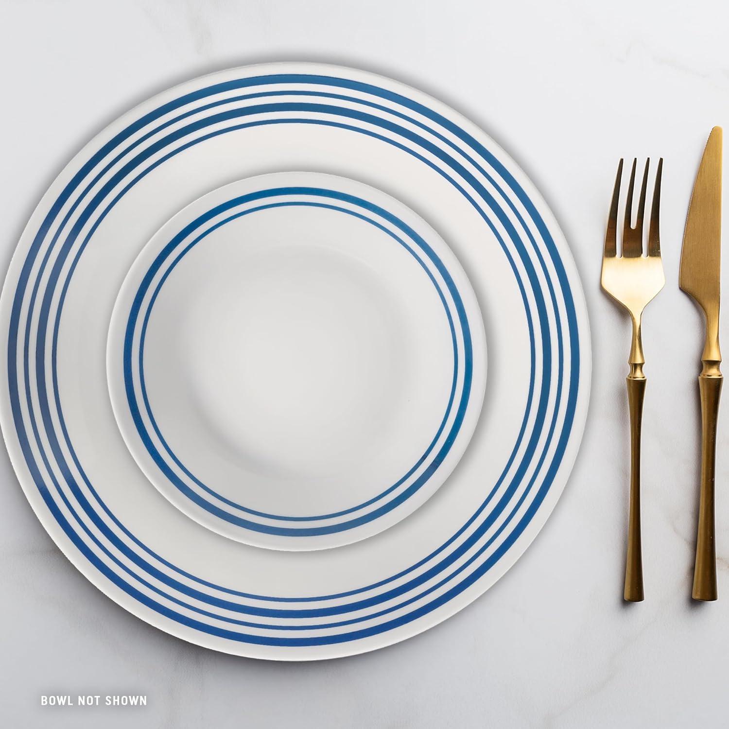 CLASSIC STYLE: Add some style to your eating experience, and make your dinnerware the topic of conversation. Measured bands in classic blue encircle plates in this coordinated coupe collection. Uplifting and sleek, this versatile, contemporary pattern offers just the right touch of timeless simplicity to any modern table setting.