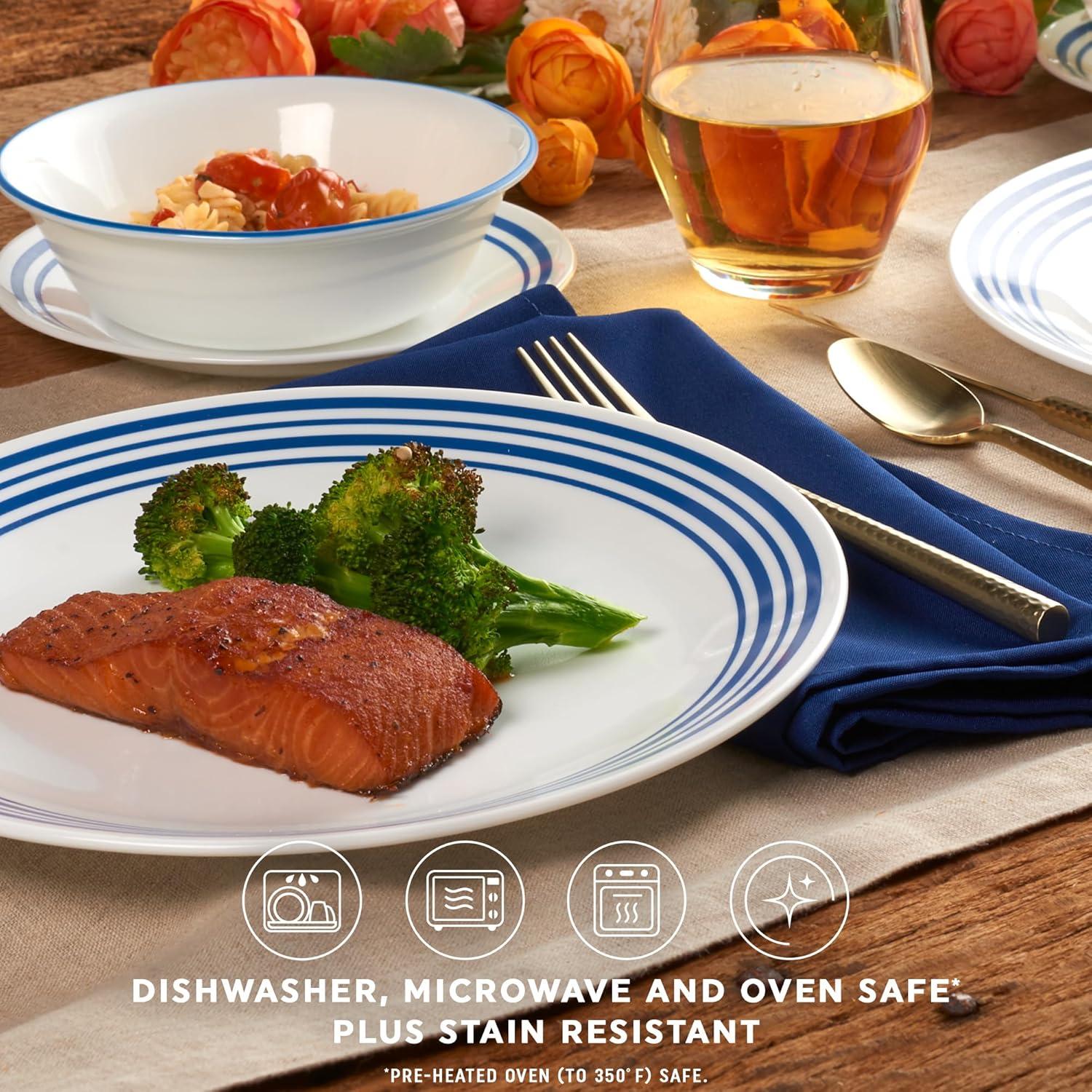 TIMELESS BEAUTY: Crafted with pride in Corning, New York, Corelle Dinnerware are a staple of modern eating for everyday occasions, filling hearts and tables since 1970. DO NOT USE ON STOVETOP, under a broiler/griller, under a microwave browning element