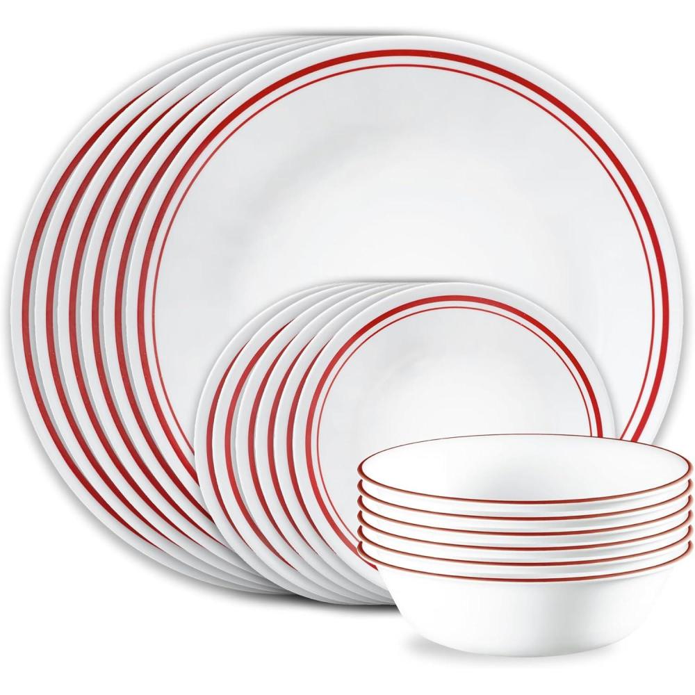 18-PIECE SET: Includes (6) 10-1/4-inch dinner plates, (6) 6-3/4-inch appetizer plates and (6) 18-oz soup/cereal bowls. This set has everything you need for a full table service of 6, and it comes with the classic Corelle style.