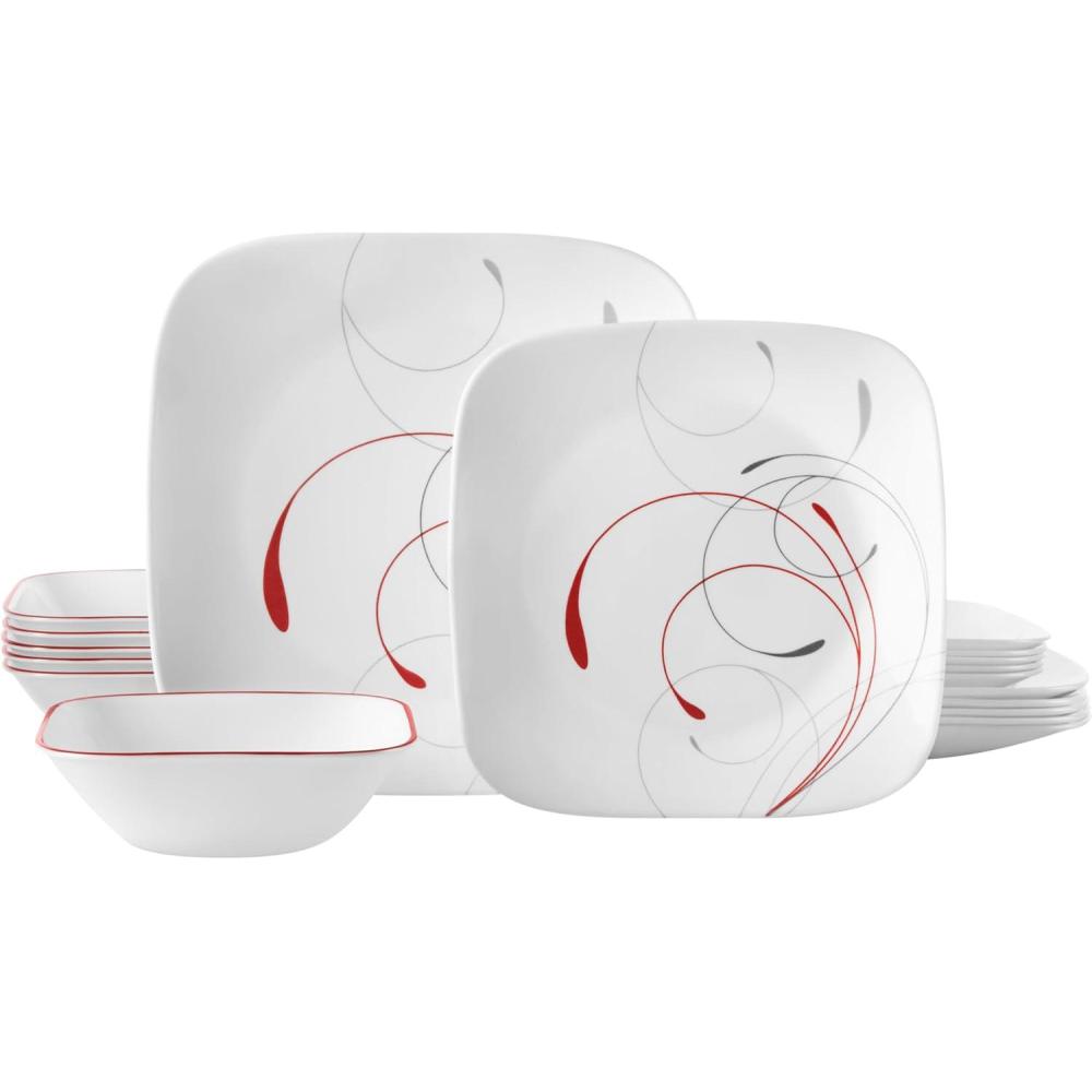 imageCorelle Vitrelle 18Piece Service for 6 Square Dinnerware Set Triple Layer Glass and Chip Resistant Lightweight Square Plates and Bowls Set Pure WhiteTimber Shadows